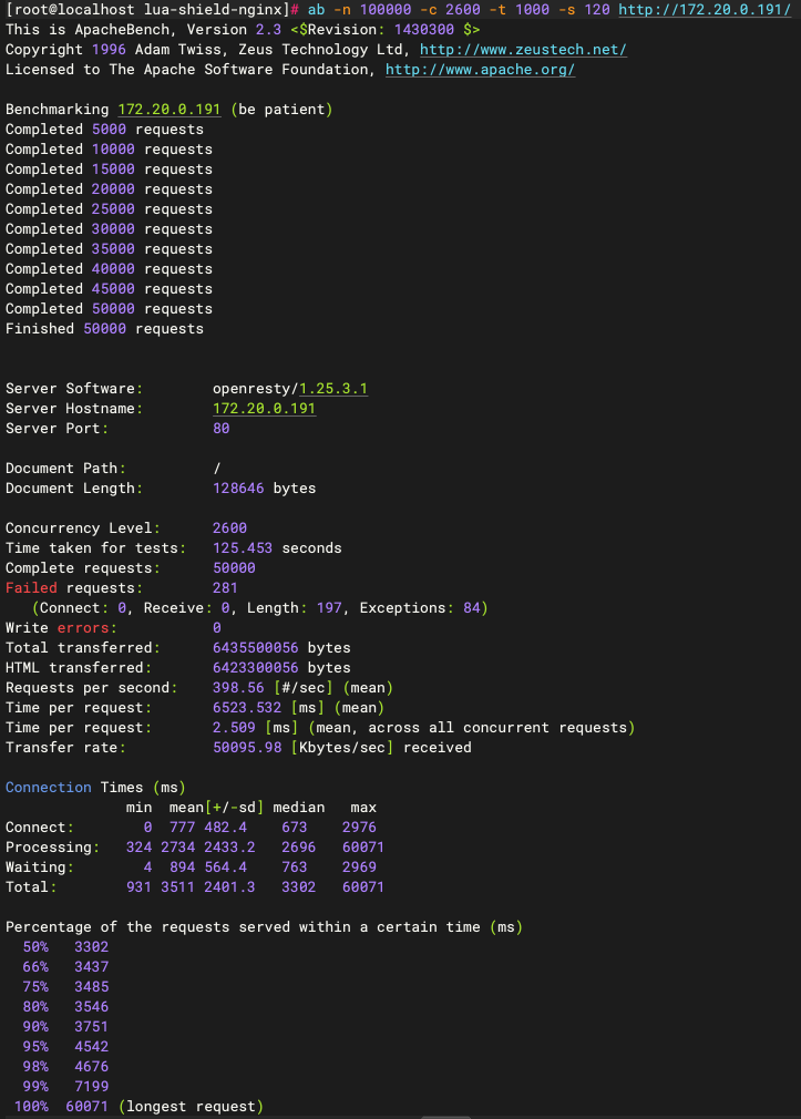 方案一测试:50000个请求,503个失败请求。