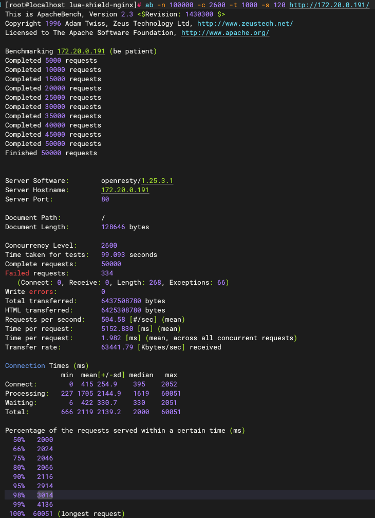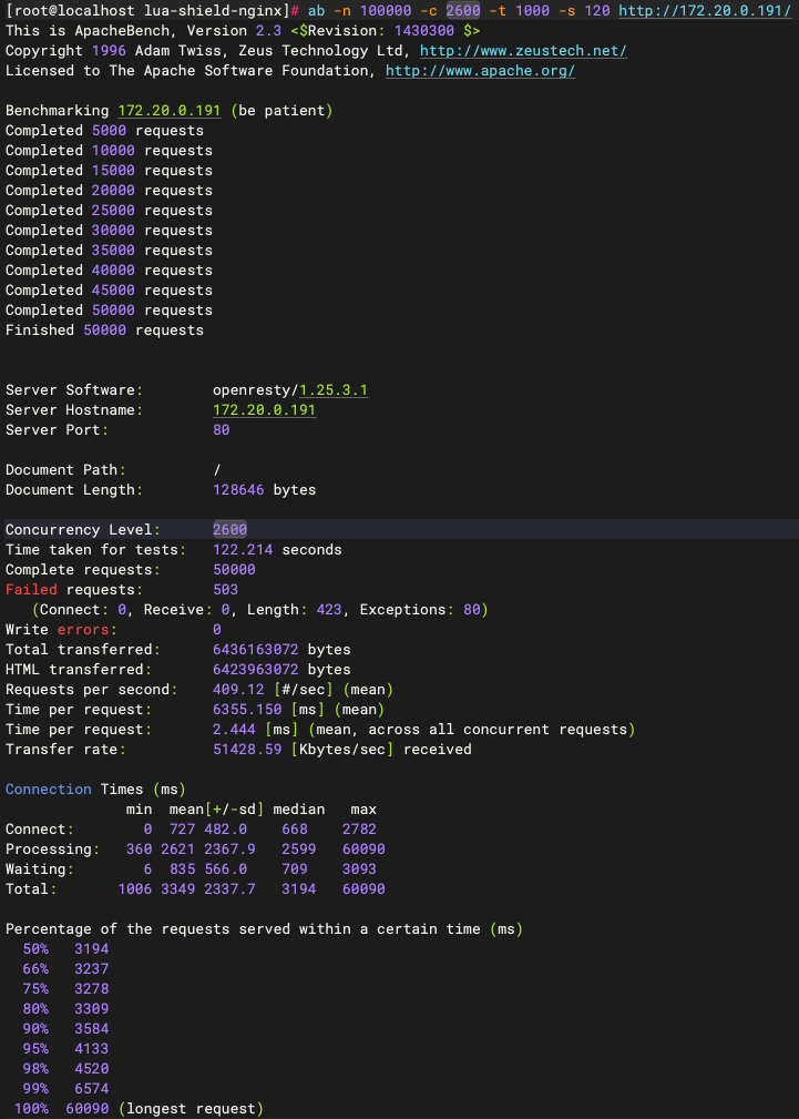 方案一测试:50000个请求,503个失败请求。