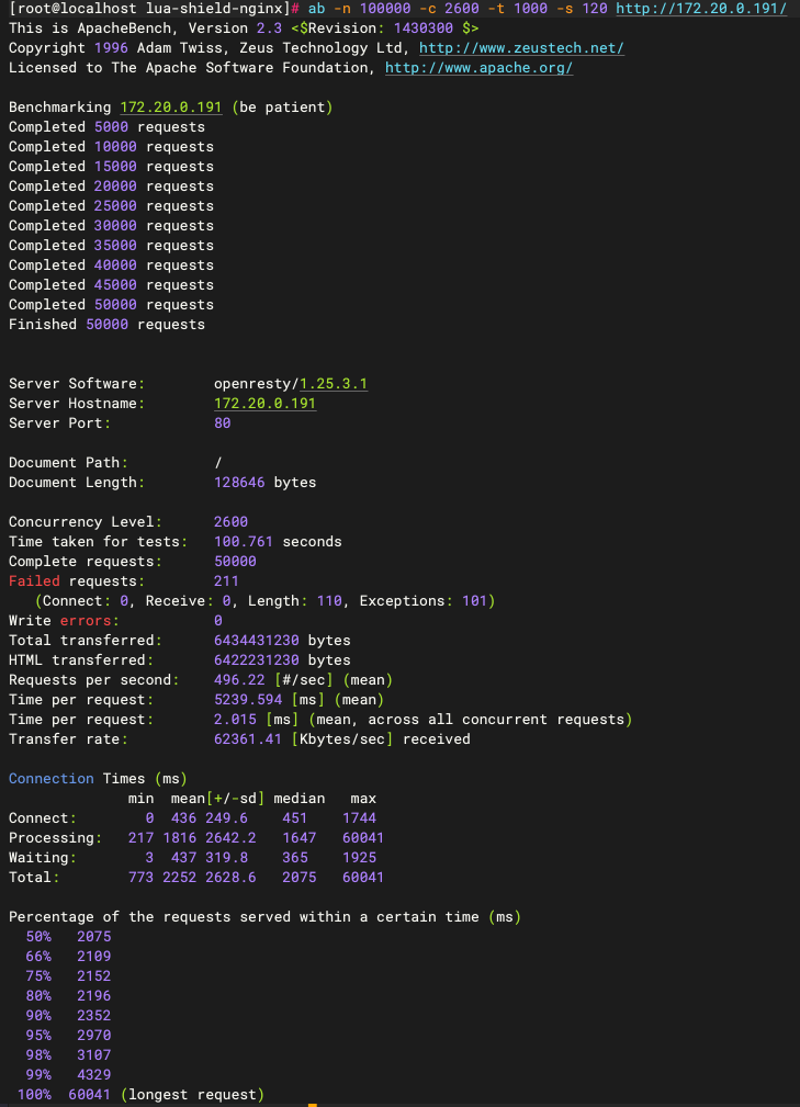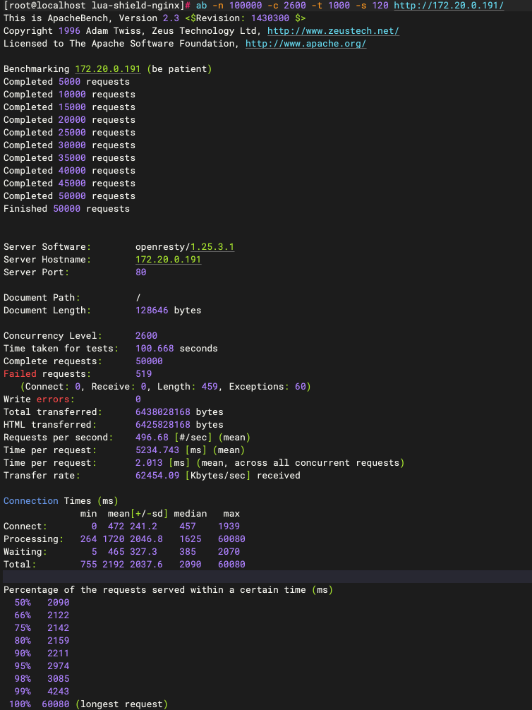 方案一测试:51428.59 [Kbytes/sec]。